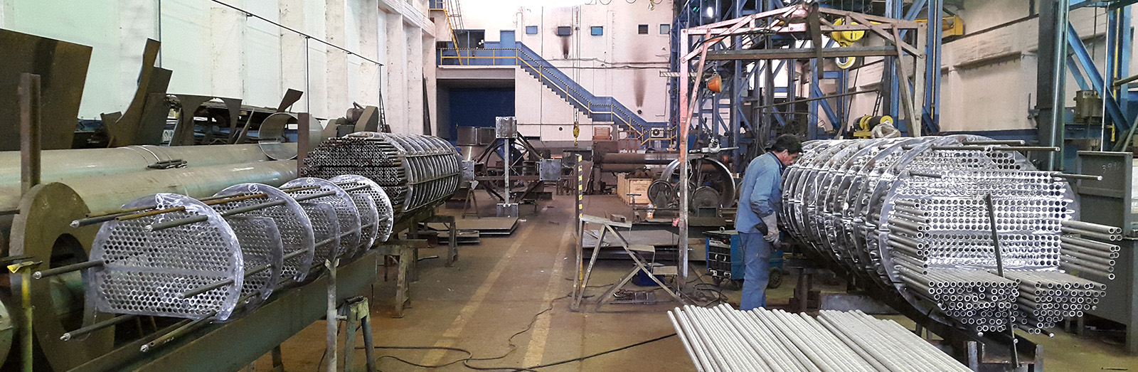 Nuestro taller metalúrgico se encuentra ubicado sobre la calle Magdalena 1843, Villa Domínico, Avellaneda, Bs. As. El edificio industrial, construído en el año 1977, es de 21 m de ancho por 103 m de largo, con salidas por el frente sobre la calle Magdalena y por el contrafrente sobre la calle Centenario Uruguayo, está equipado con dos puentes grúa, uno de dos aparejos de 7,5 tn cada uno, y otro con dos aparejos, uno de 25 tn y otro de 16 tn, con altura neta de izaje de 8,5 m. Esto permite la fabricación de equipos de 5 m de alto, por 5 m de ancho por 18 m de largo y hasta 50 tn de peso. Cuenta con vestuarios, instalaciones sanitarias, dos comedores, consultorio médico, sala de reuniones, oficina técnica y de proyecto, oficina administrativa y oficina de taller, con un total de 500 metros cuadrados, totalmente reciclado en el año 1996.